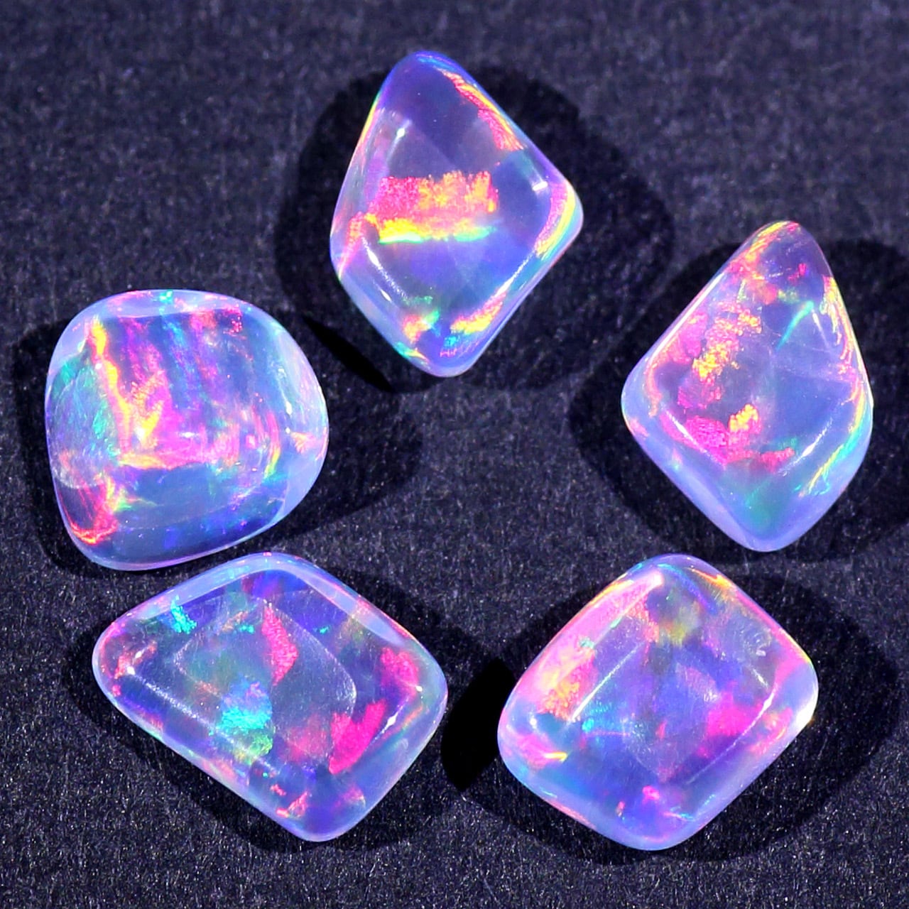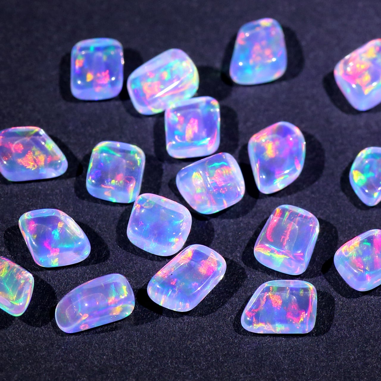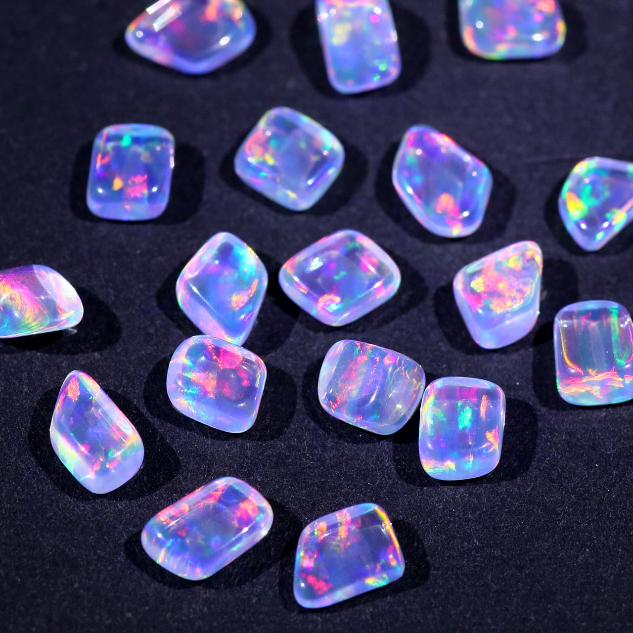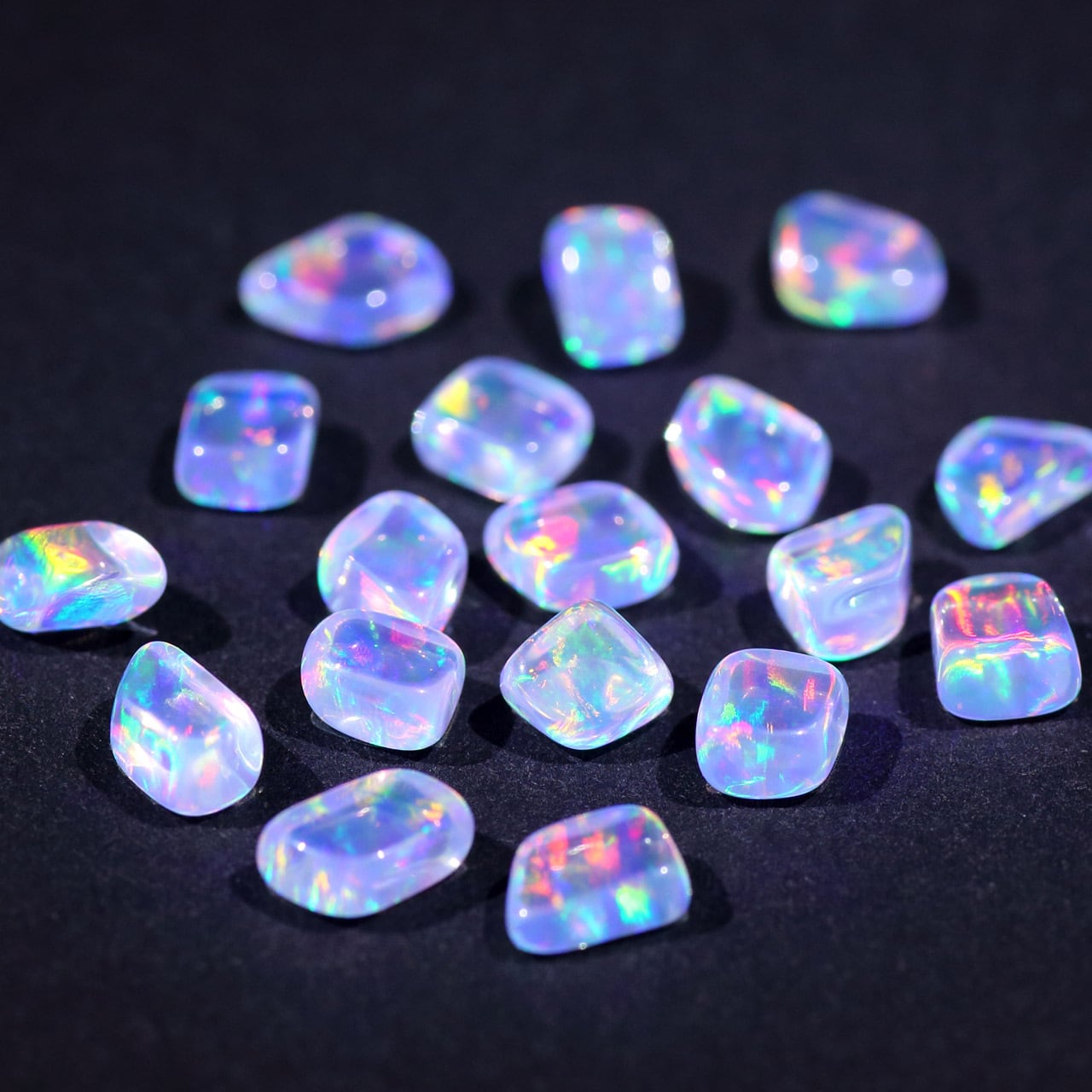 無色透明の地色に、虹色の輝きを持つオパール